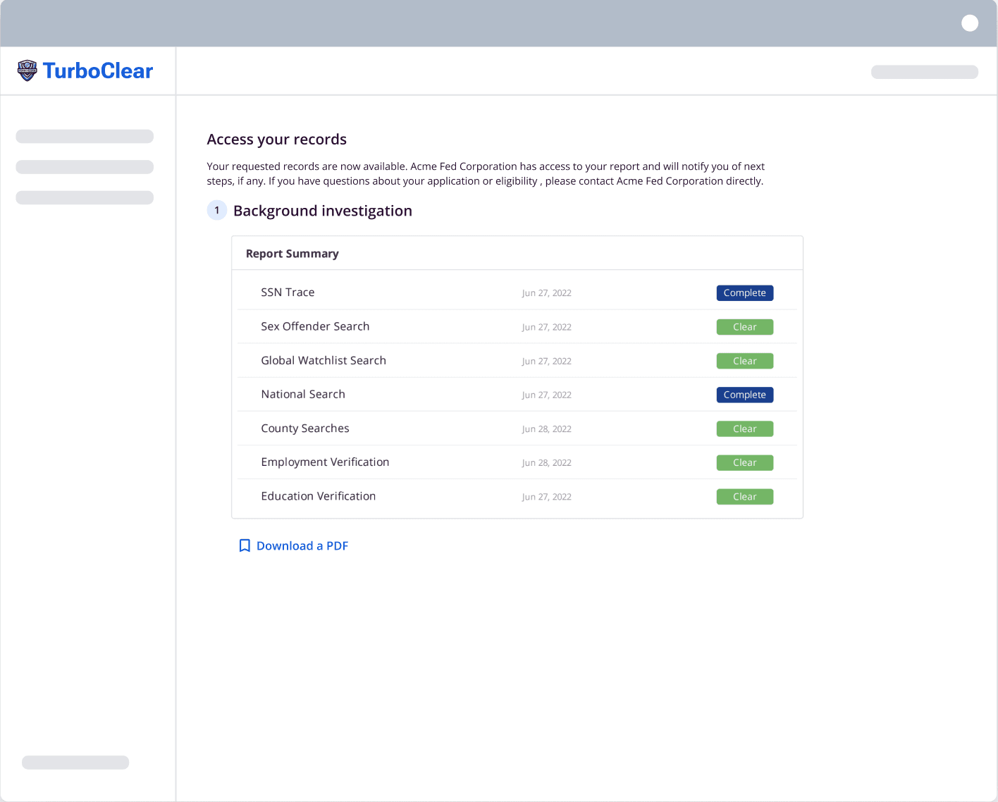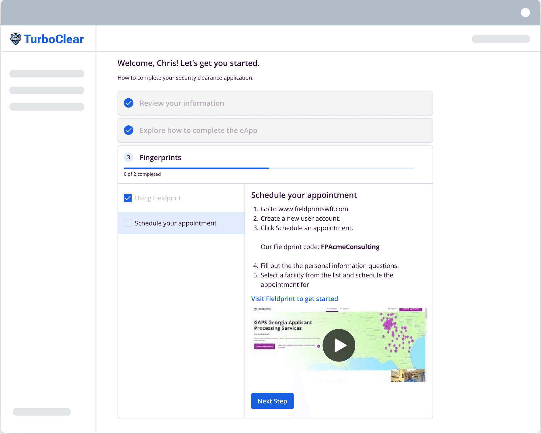 Overview of applicant onboarding flow, which includes credential and clearance requirements